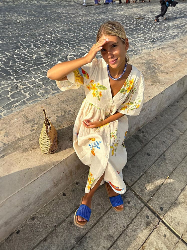 Das Kleid aus leichtem Polyester bietet hohen Tragekomfort und fließende Formen und ist somit ideal für entspannte Tagesmomente und besondere Abende. Kombinieren Sie es mit Pumps und zartem Schmuck für einen lässigen Resort-Look oder mit Sandalen für mühelose Eleganz.