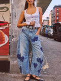 Featuring a scattered pattern of deep-toned hearts across a relaxed wide-leg silhouette, this piece blends artistic charm with everyday comfort.