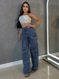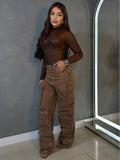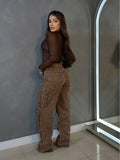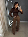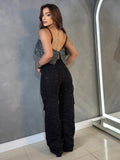 Designed with a cascade of micro-crystal sparkles over a dramatic cargo silhouette, this piece blends utilitarian edge with an irresistible touch of glamour. The stacked multi-pocket design adds dimension and confidence, while the relaxed wide-leg fit brings effortless movement and comfort.