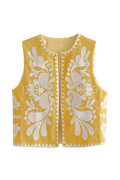 The Arinne Embroidered Waistcoat Vest is a timeless statement piece that combines artisanal craftsmanship with modern versatility. Adorned with delicate hand-embroidered details, it transforms a classic vest into an elevated layer for any occasion.