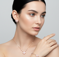 Plated in 18k rose gold, the set offers a soft, romantic glow that resists tarnishing and preserves its brilliance over time.