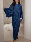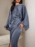 Indulge in pure luxury with this satin maxi dress, designed to combine dramatic elegance and timeless sophistication.