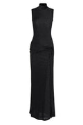 The chic turtleneck and low waist strap detail add structure, while the pullover style offers seamless sophistication. Perfect for evening parties, fashion-forward events, or any occasion where glamour is essential, this dress delivers effortless impact with every step.